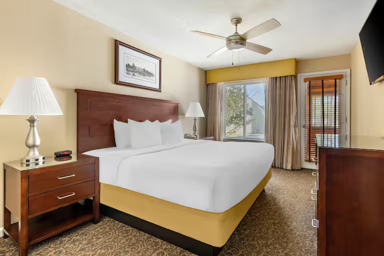 Furnished in the Colonial style, this resort offers all the modern amenities and activities you could want. Surrounded by the area's top attractions and historic landmarks, there's plenty to explore, ensuring that your getaway is one to remember. • Guest checking in must be 21+ with valid ID. • Guest must have debit/credit card to put $250 refundable security deposit on hold at resort check-in. . Resort Fee at $7 per night. • Name on reservation must match photo ID at check-in.