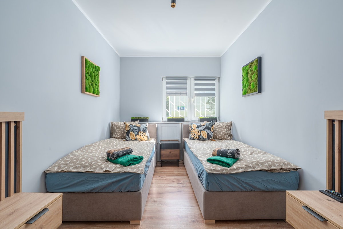 Witaj w Kolumna House - komfortowym domku noclegowym położonym w miejscowości Łask. Oferujemy przestronne i pięknie zaaranżowane dwa pokoje. Sypialnia posiada 3 wygodne łóżka, zaś salon posiada 2 łóżka oraz kanapę z funkcją spania. Mamy również w pełni wyposażoną kuchnię, w której Goście mogą przygotować posiłki. Do dyspozycji naszych Gości, na tarasie znajdują się sauna oraz balia ogrodowa. Korzystanie z nich jest dodatkowo płatne, możliwe po zapoznaniu się i akceptacji z ich regulaminem.