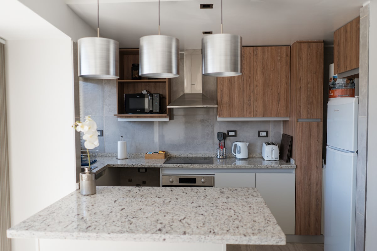 Élvezd a lakás melegét. Mendoza városának Quinta Section lakónegyedében található szálláshely számos helyet megismerhet, még jármű nélkül is, minden a közelben van: Arístides utca, Parque San Martín, Mendoza mikroközpontja. Ha pedig autóval érkezel, van parkolóhelyünk! A hálószobában és a nappaliban is van légkondicionáló, hogy a szálláshelyen eltöltött időd még kényelmesebb legyen.