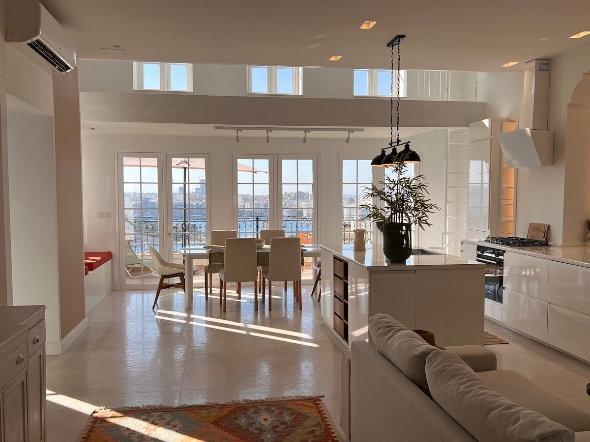 Kényelmes stúdiólakás tetőtérben, panorámás kilátással a kikötőre