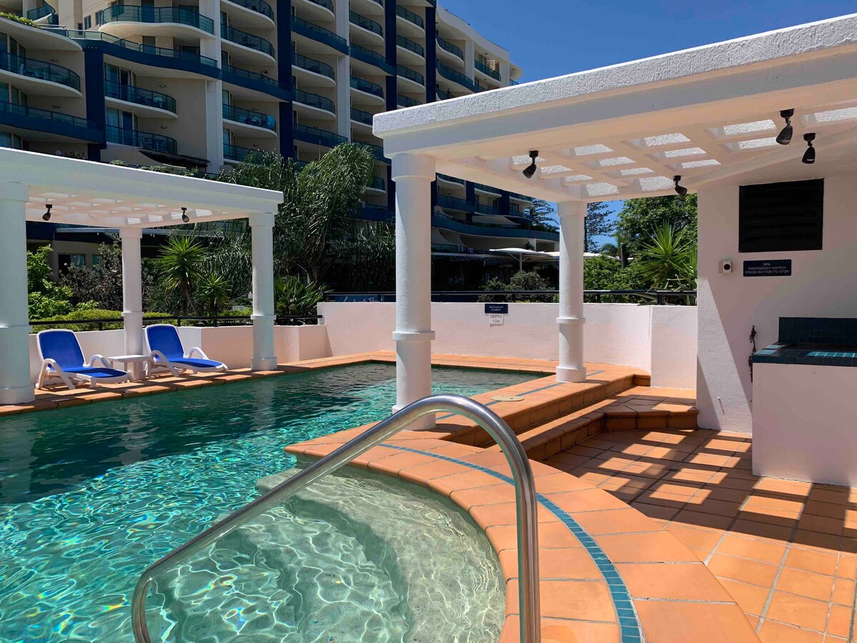 Castaways Penthouse Noosa, kilátás a strand melletti medencére