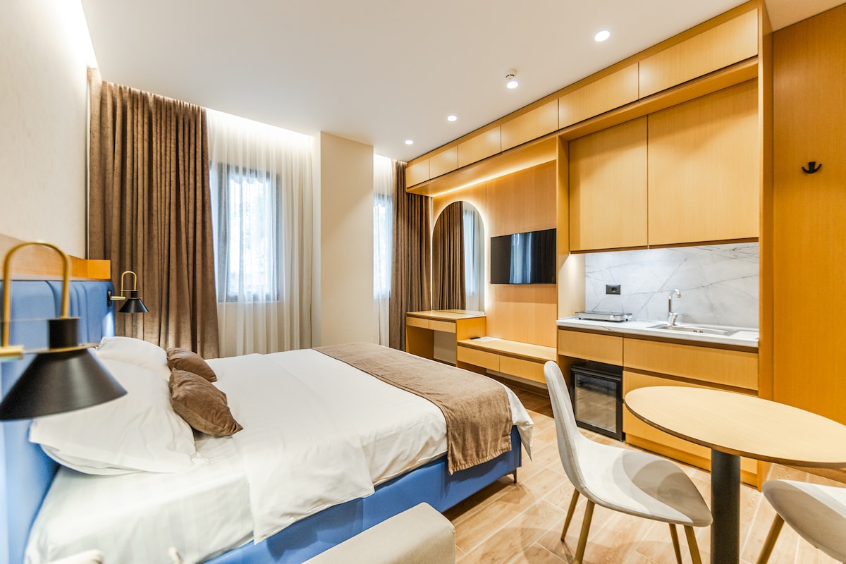 Welcome to Selez Residence, a modern aparthotel in the heart of Durrës. Our 1-bedroom apartments offer comfort, cleanliness, and full privacy — each equipped with a kitchen, washing machine, and everything you need for a pleasant stay. Located just minutes from the port and city center, Selez Residence is ideal for both holiday and business stays. Feel at home with the comfort and convenience of a contemporary hotel experience.