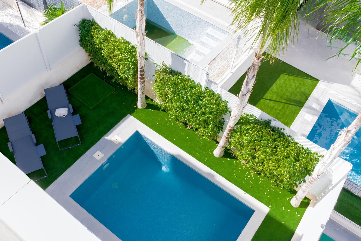 Kortárs villa saját medencével és tetőtéri szolárium sétatávolságra Pilar de la Horadada városközponttól. 3 hálószoba, 2 fürdőszoba zuhanyzóval, nyitott terű felszerelt konyha, egy kényelmes társalgó a teraszon, valamint egy 90m2 szolárium élvezni al freskó étkezési és napozás. Az Ön kényelme érdekében: légkondicionáló, WiFi, intelligens TV nemzetközi csatornákkal és Netflix, mosógép / szárítógép, ágynemű és törölközők.