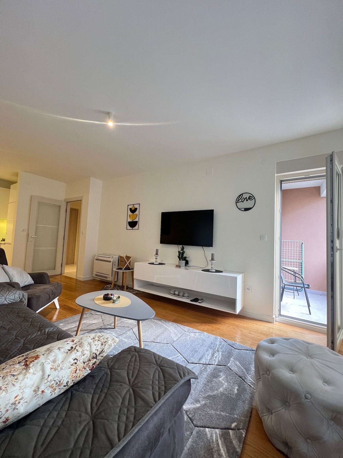 90 square meters apartment newly furnished with pure love in the center of the Podgorica city center. Ideal for short or long stays, either business or leisure purpose. The apartment is basically a minute from the main square, great pubs, bars and restaurants. It is a few minutes walk from Podgorica's historical district, rocky Moraca riverbank, Gorica hill. Public (free) parking behind.