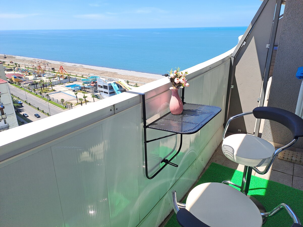Orbi City is located on first line from the sea, only 50 meters away from the beach. Indulge in the remarkable views of the sea, Gonio fotress and even Turkish mountains from my apartment, located at 42nd floor of the Orbi City block C. It has a dining area with a smart TV. Free WiFi and air conditioning are available. There is also a kitchen, fitted with a microwave, electric kettle and fridge. I provide clean bed linen. Dolphinarium is 1.3 km away. Front desk helps you 24 hours.