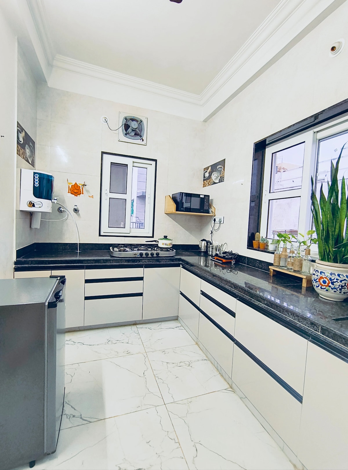 Bring the whole friends & family to this great place with lots of room for fun - All large rooms equipped with 55” inch TV. - Spacious, clean and beautifully furnished interiors - One Room with private Swimming Pool of 225 sqft - Fast Wi-Fi & Smart TV - Fully equipped kitchen-All essentials - 24/7 hot water & air conditioning - Private balcony - 2 car parking - Bathroom essentials- Biotique - EV charge ₹ 1200 Perfect for Couples & families looking for a stylish, peaceful, & well-connected stay
