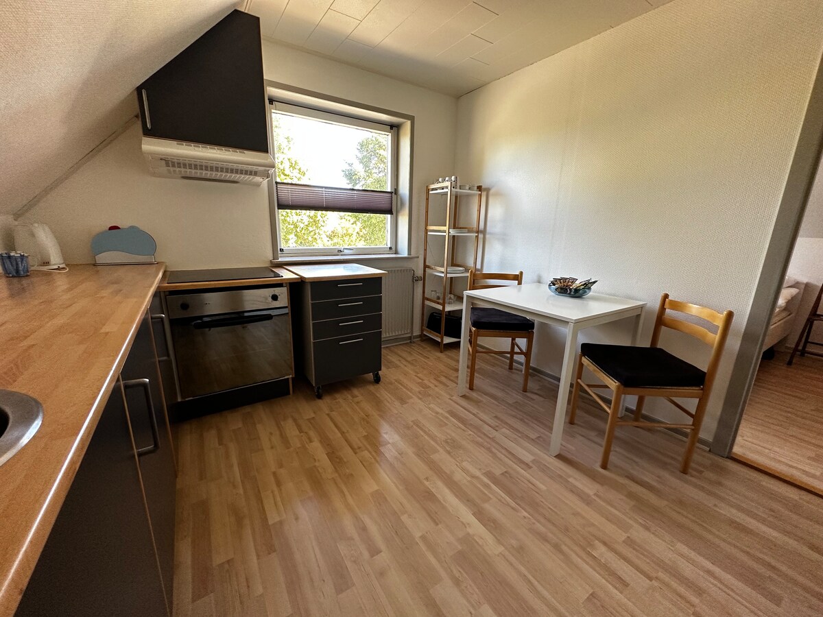light, cozy attic appartment with 45m2 in the former stable of a beautiful farm from 1894, situated next to the Wadden Sea between the historic town of Ribe and Denmark's energy metropole Esbjerg. There is a grocery store nearby (500m), which is opened 7 days a week.