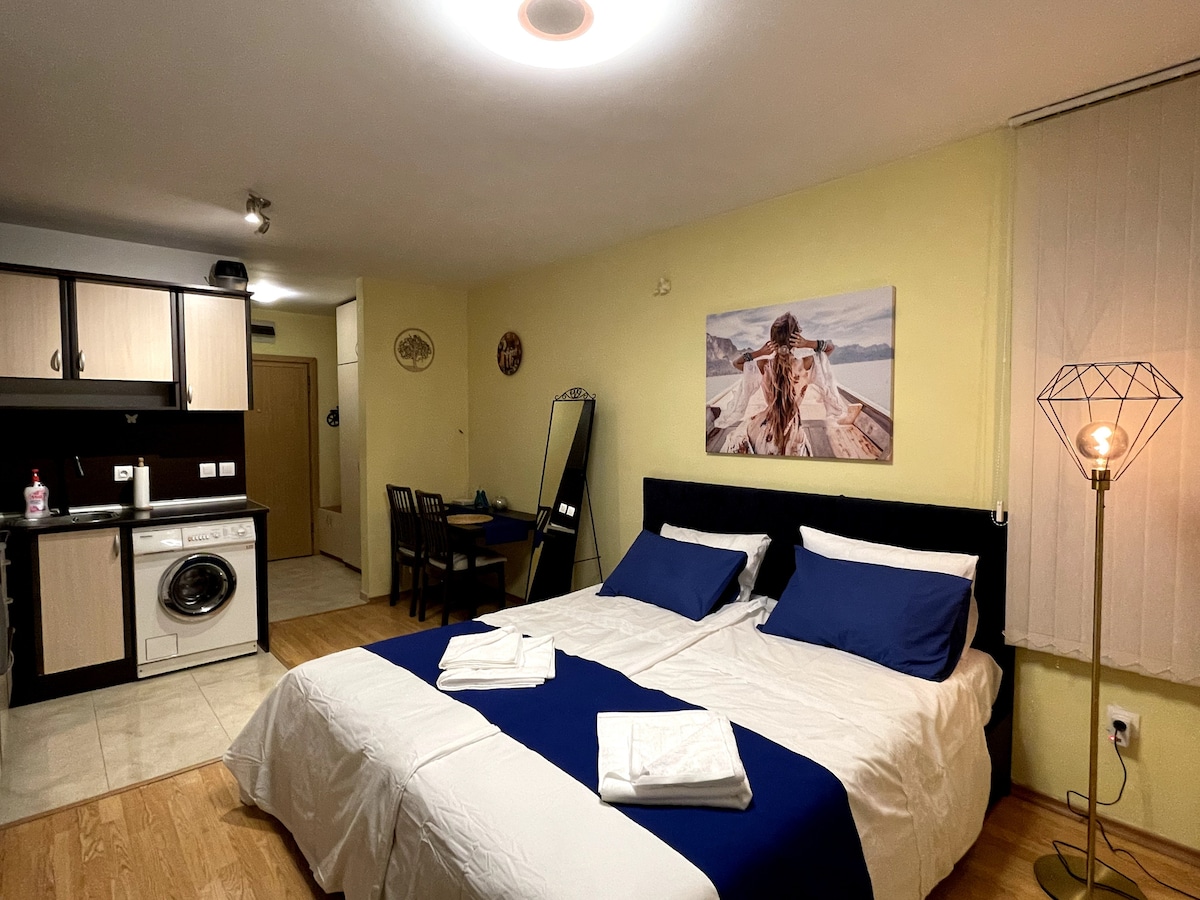 The place to stay when you are in Sofia! Come enjoy a luxurious experience in this one of a kind brand new development in Studenstki grad offering luxurious and stylish furnishings, a fully equipped bedroom, kitchen and bathroom with all you need for a comfortable stay. Located right next to the University of National and World Economy (УНСС) the building is unique with its holistic approach to solving your residential needs - from the smooth check in process to a comfortable, relaxing sleep.