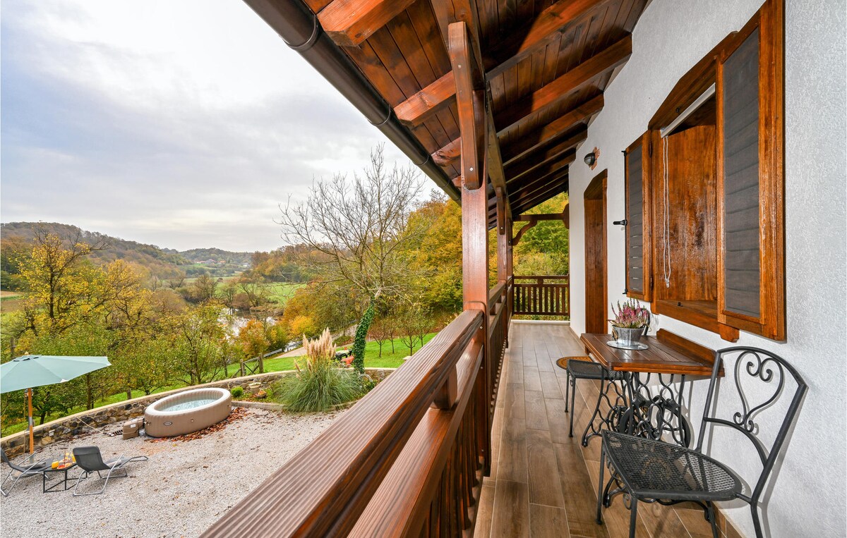 Dobrodošli u našu idiličnu vikendicu, udaljenu samo 100 metara od slikovite rijeke i popularnog kupališta. Uživajte u potpunoj privatnosti našeg imanja, opuštajući se u prostranoj pečenjari ili zaranjajući u opuštajući jacuzzi. Dodatno, gostima je na raspolaganju i naša sauna za potpuno opuštanje. Iskoristite priliku za opuštanje u prirodi uz sve pogodnosti koje naša vikendica nudi.