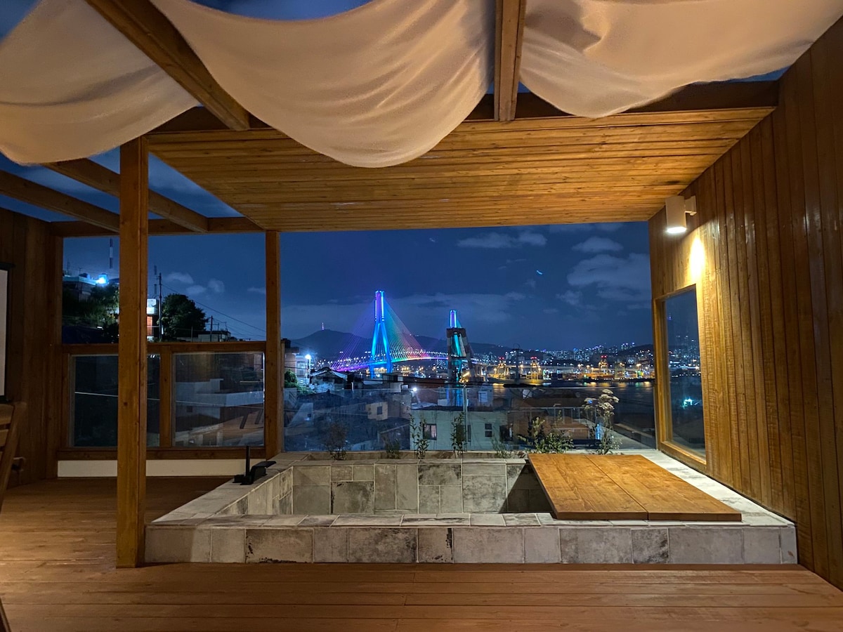 Busan utazás legjobb választása, óceánra néző, 2 emeleti, saját használatú, szabadtéri fürdő, ingyenes jacuzzi használat, vetítő, Busan állomás, Hyeonnyeoul falu