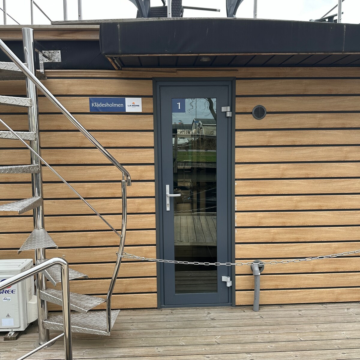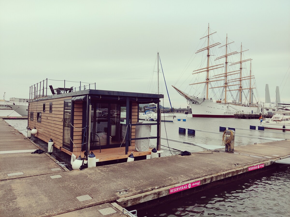 Egyedi úszó apartman kilátással a vízre, központi helyen Göteborgban. Mindössze 1,5 km-re a központi pályaudvartól és a Nordstan bevásárlóközponttól. A környék egy kicsit alternatív egy „feltörekvő” ipari területen helyi sörfőzdékkel, művészeti galériákkal, utcai művészettel és városi kertekkel. Összesen 140 négyzetméteren terül el 2 emeleten, 4 hálószobával, 2 nappalival, 2 fürdőszobával és nagy, 8 fős, nyitott étkezővel. Szabadtéri terület társalgóbútorokkal és grillezővel. A ház magánlakás is személyes tárgyakkal