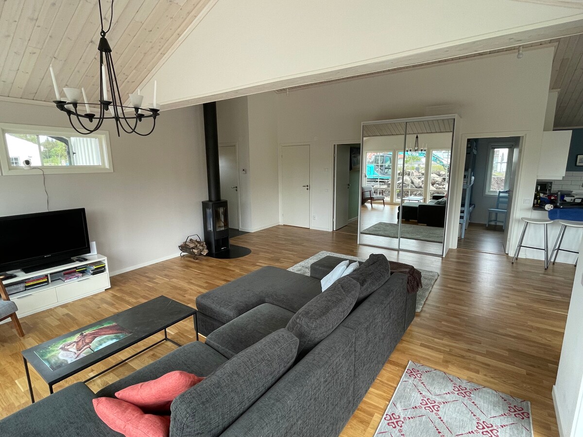 Hozza el az egész családot ebbe a tágas, új építésű lakásba, amely Visby-tól 12 km-re északra található, és saját elektromosautó-töltővel rendelkezik, amelynek díja 3 SEK/kWh. 3 szoba 1 szinten összesen 65 m2 és 6 ágy (180 cm-es kétszemélyes ágy, 160 cm-es kanapéágy, 90 cm-es emeletes ágy) Kb. 1 km-re van a busz, amely Visby-be visz Az ágyneműt a vendégeknek kell elhozniuk, az ár nem tartalmazza. A takarítás nem tartozék, a vendégeknek kell elvégezniük a takarítást a kijelentkezés előtt. A takarítás fizetés ellenében kérhető, 2000 SEK. Wi-Fi, TV, teljes méretű konyha mosogatógéppel, redőnyök, terasz, grill.