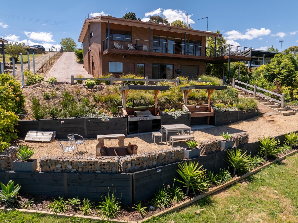 Escape to the ultimate entertainer's paradise in this fully renovated fun house - 4 TVs, spa, sauna, full size pool table, table tennis table, poker table, 3 firepits, alfresco dining, BBQ, "man cave", chef's kitchen, gardens, views & meet locals like cockatoos, roos & rabbits in the gardens. 4 beds with 3 splittable into kings - sleeps up to 7 in total luxury! Wake up to birds chirping and kangaroos grazing right outside your window.