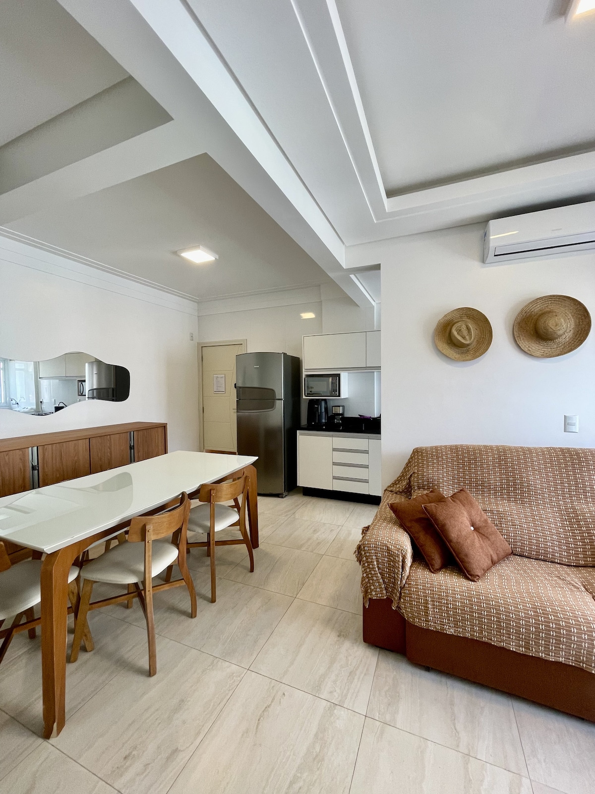Szállj meg Jurerê (Florianópolis, SC) gyönyörű tengerében egy teljesen modern loftlakásban amerikai konyhával, franciaággyal, Split légkondicionálóval, 40"LED kábellel SmarTV Netflix-szel, minibárral, tűzhellyel, mikrohullámú sütővel, forró fürdővel és nagy erkéllyel, kilátással a tengerre.