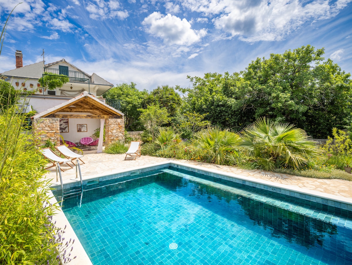 Elbűvölő kisház kerttel és úszómedencével