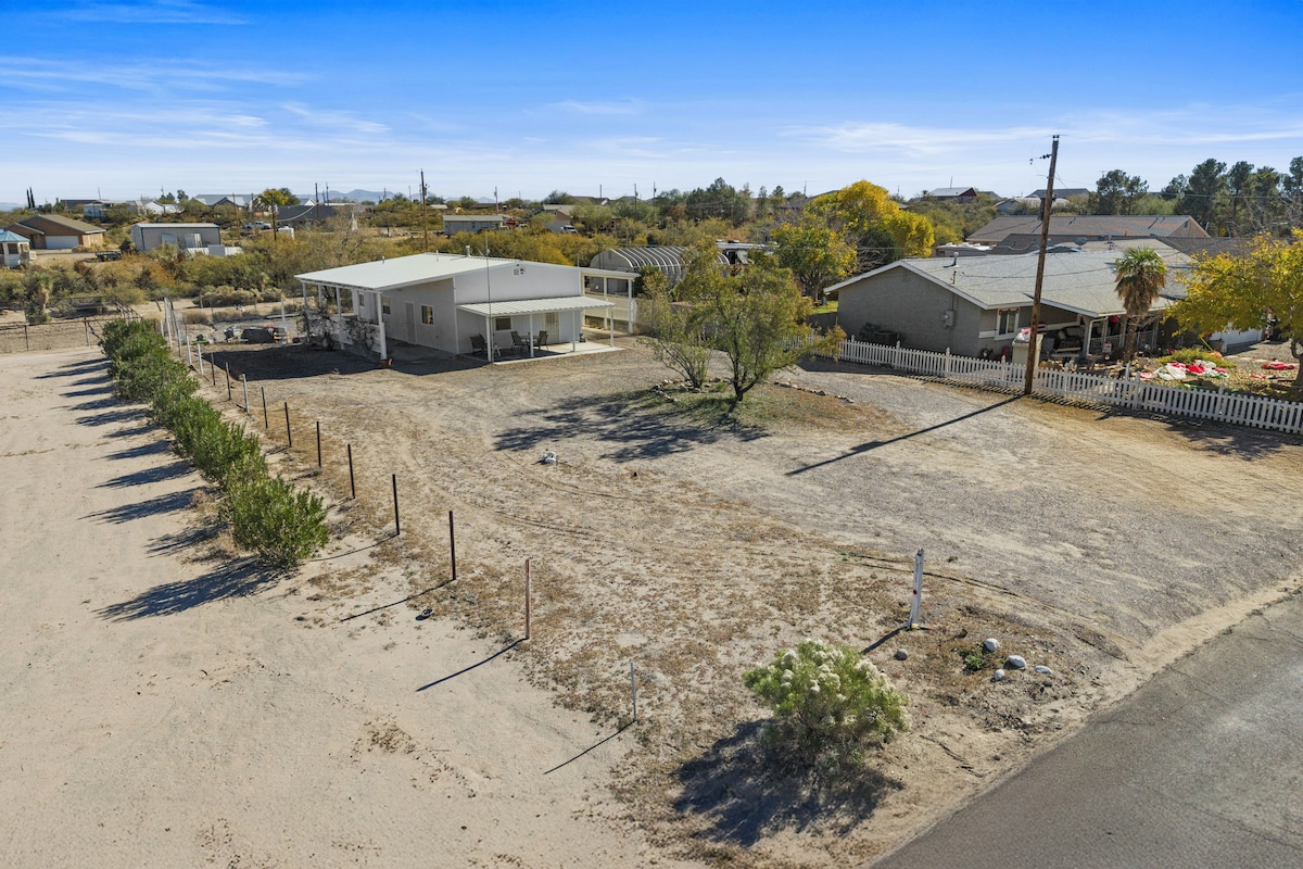 Step into this charming rustic bohemian-style retreat, where warm wood walls and an open floor plan create a cozy yet spacious atmosphere. The home is designed with a curated blend of modern comforts and antique treasures. Nestled amidst the beauty of a mesquite bosque and expansive desert landscape We have a queen bed and a queen foldable floor mattress. It is 17-minute from Safford/Thatcher We are a non-smoking, no-pet property. There’s a $250 USD fee for those who smoke or arrive with pets