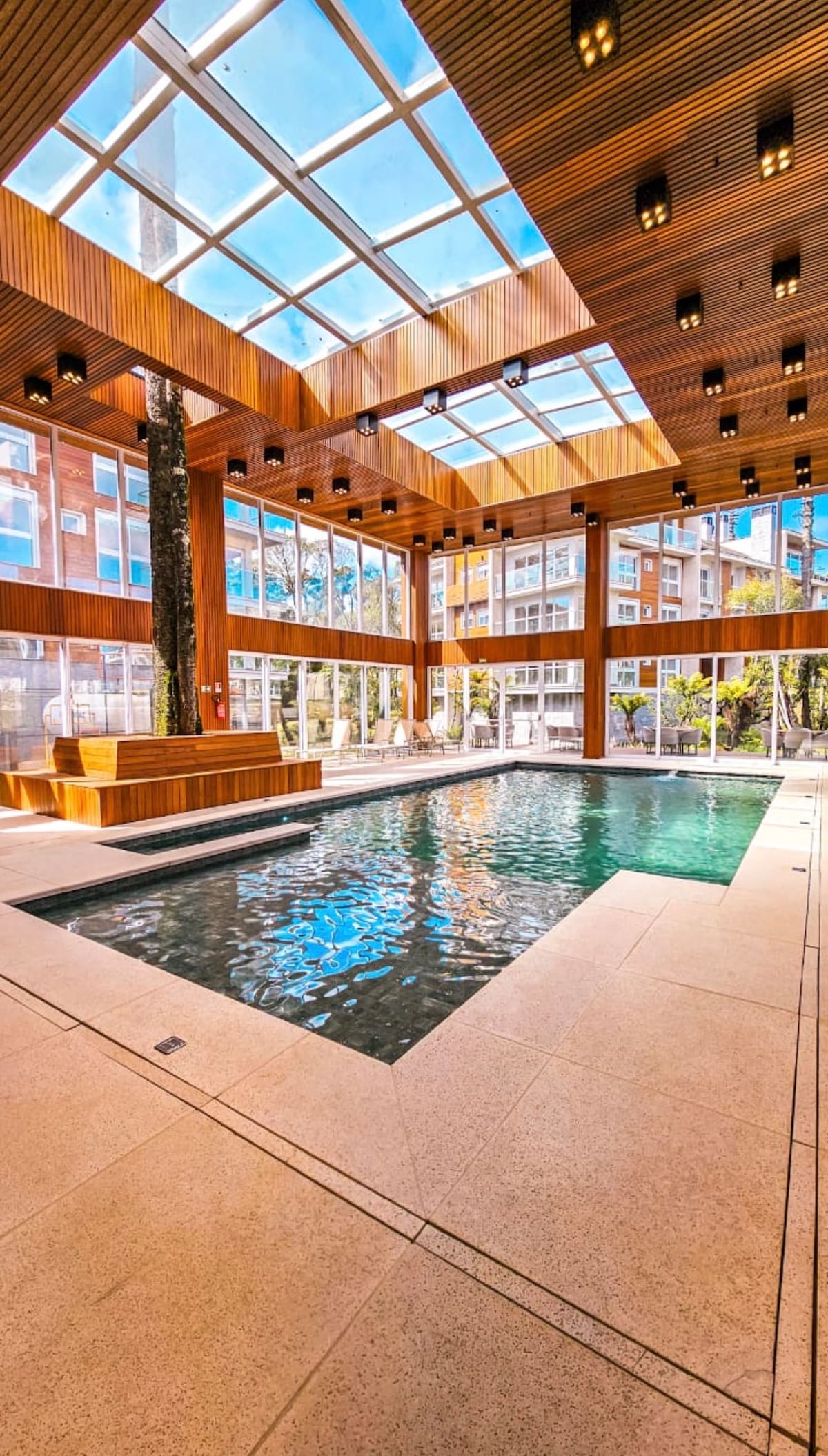 Viva momentos únicos na Serra Gaúcha! Hospede-se em um flat completo com a estrutura de um hotel e o conforto de casa. Lareira, piscina aquecida, sauna, brinquedoteca, academia e muito mais. Nosso flat está em local tranquilo, apenas 700 metros da Catedral de Pedra (cartão postal/centro de Canela). Fica em uma rua residencial arborizada, com fácil acesso a cafés, restaurantes e lojas. Ao lado área verde, contato com a natureza. Serviço de café da manhã (custo à parte) entregue no apto.