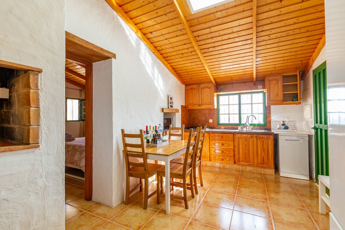 A tyúkól itt volt. De szinte semmi sem maradt belőle. A sziklafalak kellemes mikroklímát teremtenek, a nagy ablakok pedig sok fényt engednek be, és a lejtőre is rálátnak. Pihenhetsz a teraszon, és egy eseménydús nap után az esőzuhanyzó a wellness oázisban vár. A „chip” autóval is gyorsan cserélhető. 15 perc a strandig, 25 perc Las Palmasig és 30 percre délre.