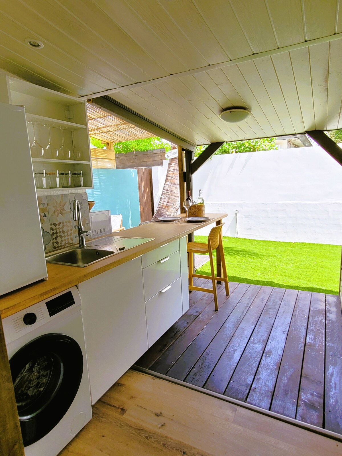Friss bungaló, kényelmes, nagyon világos és nagyon jól felszerelt, hihetetlen kilátás nyílik a tengerre. Privát domainben található, és egy portál biztosítja. A központ, üzletek és éttermek az utca végén találhatóak. 700 méterre található az a strand, ahol az úszást hálóval figyelik és biztosítják. Minden sétatávra van. A magánszféra megóvása érdekében a szállás a telkünk egy privát részére épül, hozzáférési kapuval.