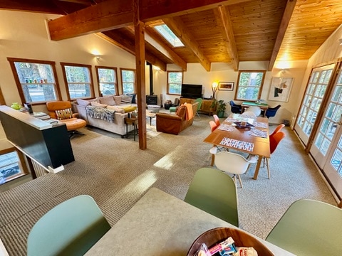 Manzárdstílusú víkendházunk sétatávolságra található a népszerű Tahoe Park-i strandtól, ahol privát hozzáféréssel pihenhetsz a vízparton, grillezhetsz, kosárlabdázhatsz vagy kajakozhatsz. Szintén közel van több kiváló étteremhez, köztük a Sunnyside-hoz és a Fire Sign-hoz, valamint a bájos West Shore Markethez. 3 franciaágyunk van, amelyek 6 vendég elszállásolására alkalmasak, és lehetőség van további 2 vendég elszállásolására is két felfújható egyszemélyes ágyon. Közel van a túraútvonalakhoz és a világhírű síparadicsomokhoz, valamint Tahoe City üzleteihez és éttermeihez.
