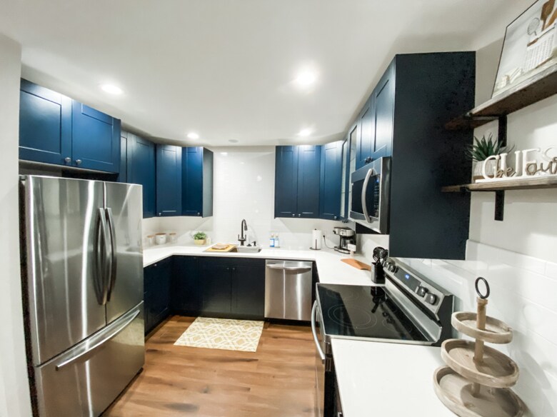 When we decided to updated this loft apartment in 2021 we know that we wanted to stay true to its origins by reusing all the original doors and most of the trim. It sits above a woman's clothing boutique in a small downtown of a rural Oklahoma community. There is a restaurant directly across the street and the local watering hole (The Thirsty Buffalo) is just a few doors down.