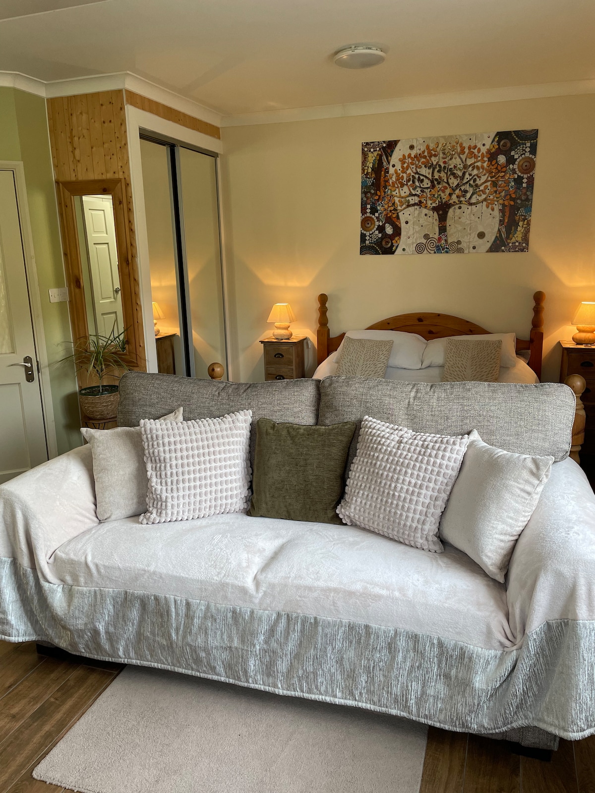 A cosy, modern, self-contained bungalow tucked away in peaceful countryside. With one double bedroom, a bathroom, and a comfortable lounge with a fold-out futon, it’s the ideal escape for rest and relaxation. Set in rural Preston near the coast and River Wyre, it’s perfect for walkers, with Blackpool Illuminations just a short drive away. Lancaster and the Lake District are also within easy reach. Due to the rural setting, driving is essential; a parking space is located next to the bungalow.
