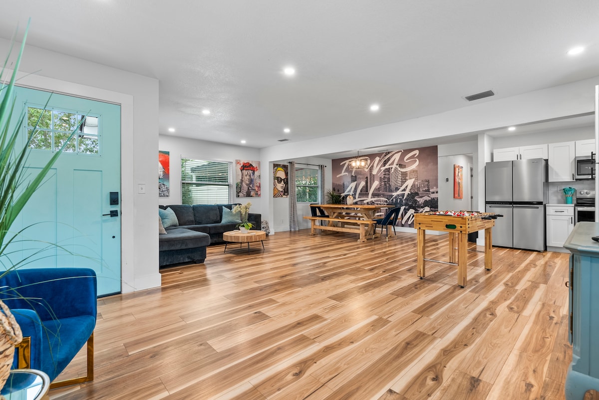 Függetlenül attól, hogy üzleti vagy szabadidős célból vagy itt, a Bucs Bungalow a te helyed! Kényelmes helyen, a Tampa Bay szívében, kevesebb mint 10 percre a repülőtértől. Egy 0,6 mérföldes séta egy focimeccsig vagy egy koncertig a Raymond James Stadionban. Nincs drága parkolási díj, és saját parkolód van a felhajtón, amely 4 autó befogadására alkalmas. Érezd jól magad gond nélkül ivás és vezetés nélkül. Bár a teljesen felszerelt konyhánk, a külön munkaterületünk és az otthoni edzőtermünk ideális a hosszabb távú foglalásokhoz!
