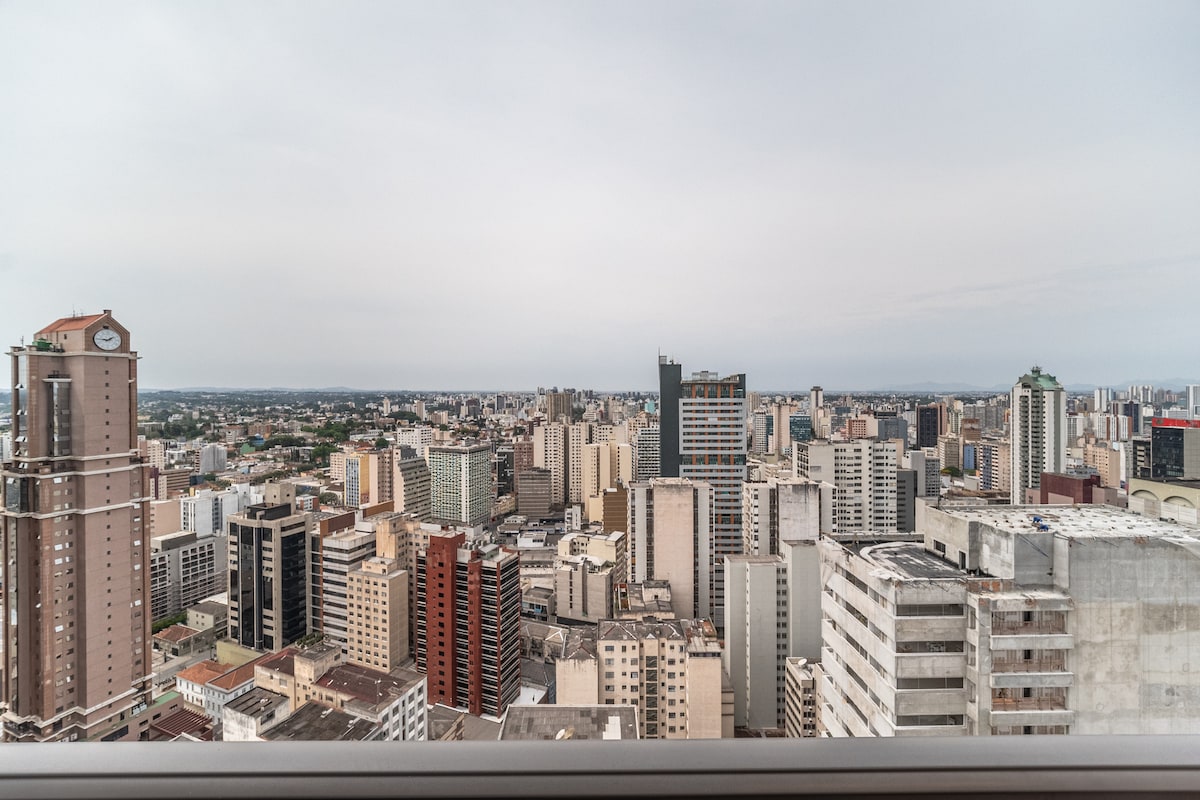 Üdvözlünk a magasban lévő menedékhelyen! Curitiba belvárosának szívében, a 14. emeleten található a kényelem és a szabadság egyedülálló élménye. Élvezd a naplementéből nyíló kilátást a kertünkre a magasban! Feirinha da Praça Osório e Largo da Ordem, te leszel az akció középpontjában. Amikor pedig visszatérsz, pihenj a nagyméretű ágyunkban, amelyet nagy és otthonos környezet vesz körül. A kényelem, a biztonság és a stílus határozza meg a szálláshelyünket. Gyere, és élj át felejthetetlen élményeket! Már nagyon várjuk az érkezésedet!