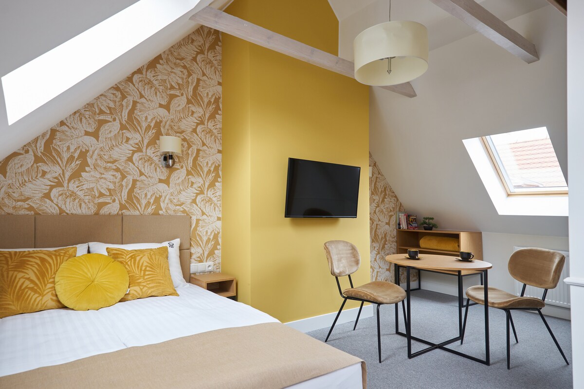 Tágas, 45 m² -es lakás a 3. és 4. emeleten, gyönyörű kilátással az Oderára. A belső teret a részletekre való odafigyeléssel tervezték, kényelmes helyet kínál teakonyhával és ülősarokkal. A kétszemélyes pezsgőfürdő tökéletes környezetet biztosít a kikapcsolódáshoz, a nagy ablakok pedig rengeteg természetes fényt engednek be a belső térbe, otthonos és nyugodt légkört teremtve. Maga az épület csak egy percre van az óvárostól.