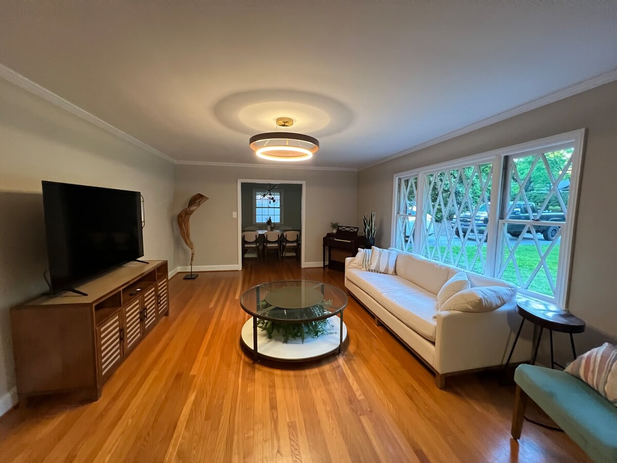 Tágas privát lakosztály az I-40 közelében edzőteremmel, biliárdasztallal és társalgóval. Élvezd a teljes alsó szintet saját bejárattal, egy békés, erdős környezetben, mindössze néhány percre Winston‑Salemtől és a Tanglewood Parktól. Tökéletes pároknak, családoknak vagy üzleti utakhoz – kényelem, magánélet és kényelem egyben. Megjegyzés: A családunk a ház földszintjén lakik. Bár mindent megteszünk, hogy figyelmeskedjünk a vendégeinknek, és nagyon kevés zaj jut át az emeletek között, valószínűleg hallani fogsz lépéseket.