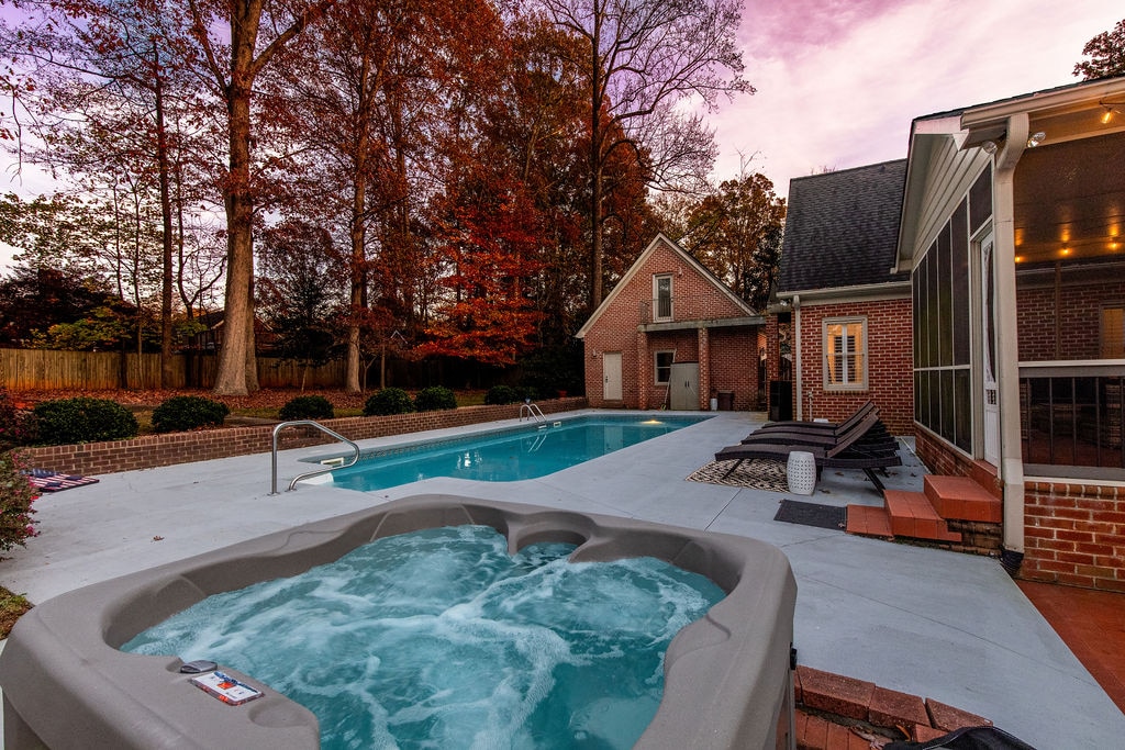 A MEDENCE OKTÓBER 1-JÉN BEZÁR!! Éld át a tökéletes kiruccanást ebben a tágas, 5 hálószobás, 4,5 fürdőszobás otthonban, amely legfeljebb 20 vendéget tud elszállásolni. A főbb jellemzők közé tartozik a medence, a 4 fős pezsgőfürdő, a tágas udvar és a fedett veranda. Élvezd a végtelen szórakozást a biliárdasztallal és sílabdával felszerelt játékszobában, vagy maradj aktív az edzőteremben szaunával. Ez a találkozókhoz vagy elvonulásokhoz tökéletes oázis Winston-Salem, Greensboro és High Point közelében található. Pihenj, töltődj fel, és teremts felejthetetlen emlékeket ebben a fényűző menedékhelyen!