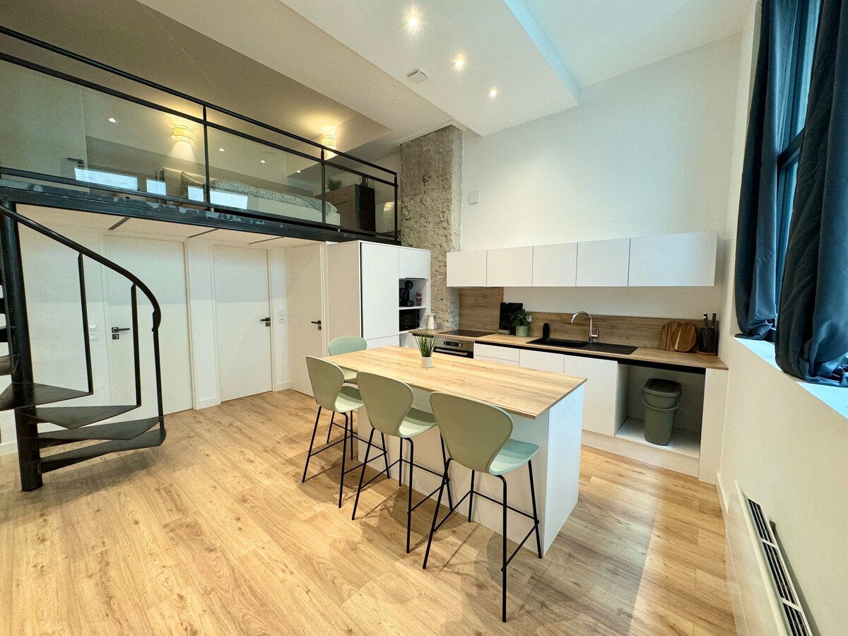Grenoble szívében, a történelmi negyedben található Halles Sainte-Claire, fedezd fel az Alpok fővárosát és környékét ebben a meleg, ipari és autentikus megjelenésű lakásban. Ideális helyen, néhány percre a vasútállomástól és az összes kényelmi szolgáltatástól, gyere és sétálj az Old Grenoble-on, kis utcáin, piacán, antik negyedében, szórakozóhelyén és éttermeiben, közvetlenül a lakás lábánál. Az A és B villamos 1 perc sétára