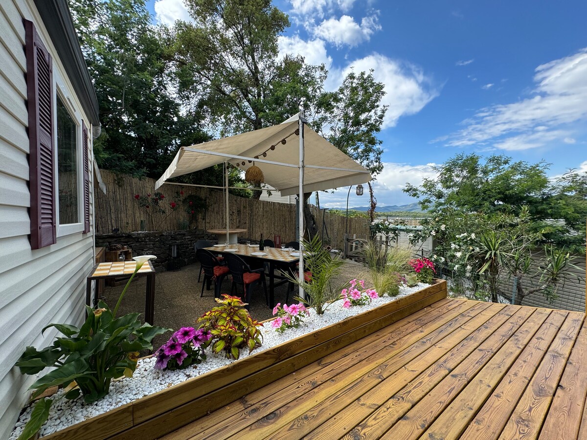 Gyere és szállj meg egy modern, 40 m2-es mobilházban 2021-től, amely a Côte d 'Azur-i Fréjusban található. Ideális 6/8 fő számára, teljesen felszerelt, légkondicionált, vezeték nélküli csatlakozókkal minden helyiségben, gyönyörű, 20 négyzetméteres fedett terasszal, tágas, napsütötte, erdős, csendes, műfűvel borított terasszal, pihenhetsz egy kerti bútorban, amely elfér az összes családnak, barátoknak , és pihenhetsz a nyugágyakon és a napozóágyakon.