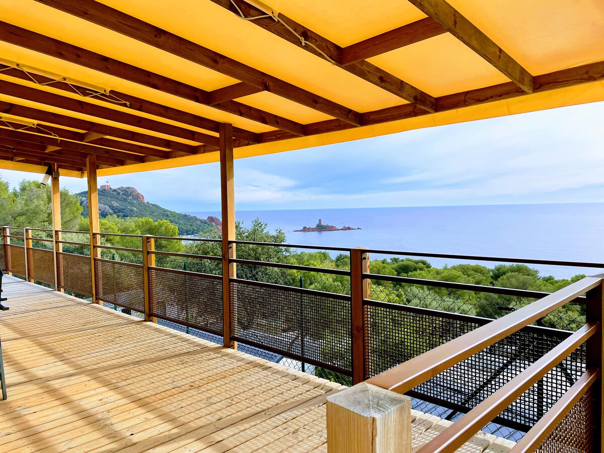 Ez a csúcskategóriás, 40m2-es mobilház, amely a 4 csillagos Domaine de l 'Ile D'Or kiváltságos új telkén található, és lélegzetelállító kilátást nyújt a Földközi-tengerre több mint 180° -ban a Dramont és a Saint-Tropez-öböl között. Nagy, 60 m2-es terasz, üveg, nem belátott, felszerelt: saját szolárium, nappali, étkező és plancha Hozzáférés fűtött úszómedencéhez, sportpályákhoz és számos játszótérhez számos strand és öböl a közelben.