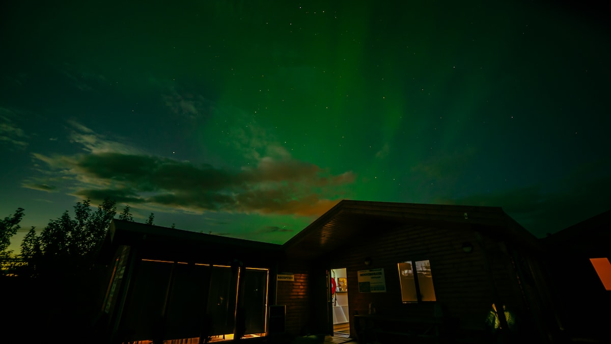 Ez a szép, kényelmes és pihentető kisház ideális helyen, Izland déli partvidékének aranykörében található. Nagyszerű hely az északi fények /Aurora Borealis megtekintéséhez, ha az időjárási viszonyok megfelelőek. A kisház egy területtel rendelkezik, és franciaággyal (160x200 cm) és egy alvó kanapéval rendelkezik. Ágyneműt, törölközőket és szappant stb. biztosítunk. A konyhánk tele van mindennel, amire szükséged van. Van egy babaágyunk és etetőszékünk a gyerekeidnek. Pihenj az egész családdal ezen a békés szálláshelyen.