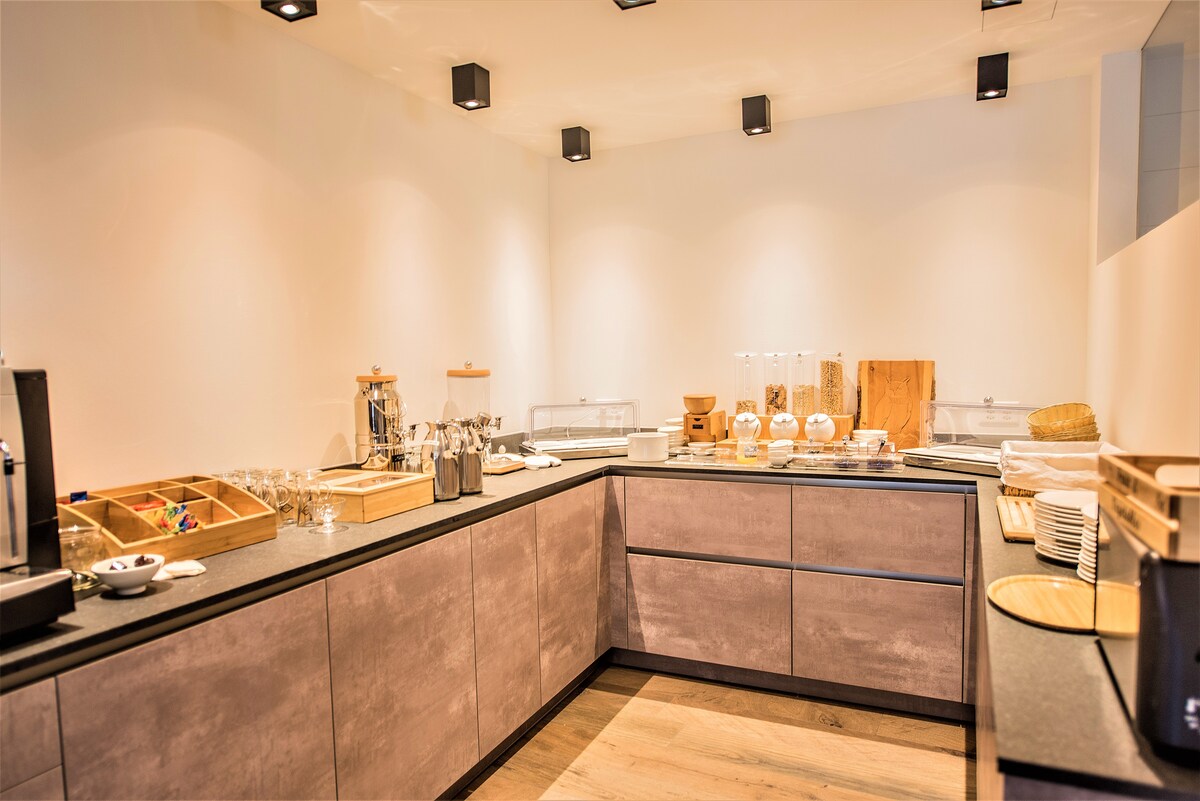 Modern apartman teljesen felszerelt konyhával, törölközőkkel, ágyneművel, okostévével, king-size boxspring ággyal és nagy kanapéággyal, matraccal. Az ár tartalmazza a wifit, a Netflix-fiókot, a SunriseTV-t, a sót, a borsot, a személyenként és éjszakánként egy kávékapszulát, a teát, a kézmosó szappant, a sampont és a mosogatószert. A bejáratnál található kulcsos doboz lehetővé teszi, hogy önállóan érkezz. Minden lakásban van mosógép és pohár.