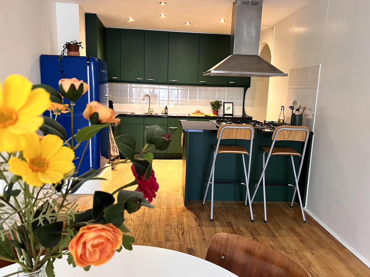 Gyönyörű loft/stúdió – ideális pároknak és hosszú távú foglalásokhoz. A privát, fényben úszó loftlakás (king méretű ággyal) nagyon közel található a Weesperzijde-hez, az Amstel folyó mentén húzódó lenyűgöző sugárúthoz, amelyen bájos kávézók és éttermek, számos lakóhajó sorakozik, és a város legjobb naplementéi láthatók innen. A közelben úszhatsz a tiszta Amstelben. Tömegközlekedés és élelmiszerboltok a közelben. Ez valóban a legjobb hely a városban.