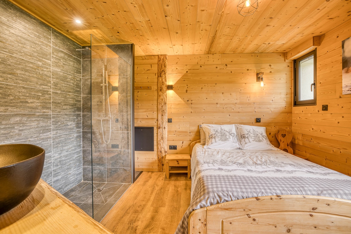 Az Aravis masszívum szívében található „la cabane d'Ernestine” faház meleg hely két embernek az erdő szélén, lenyűgöző kilátással a völgyre. A hangulatos légkör garantált a fa hatású elektromos tűzhelynek köszönhetően, a kandalló minden varázsa korlátozás nélkül és biztonságosan! Autentikus savoy-i dekoráció, csendes, túrázás és síelés (La Clusaz, Le Grand-Bornand): ideális szállás a feltöltődéshez nyáron és télen.