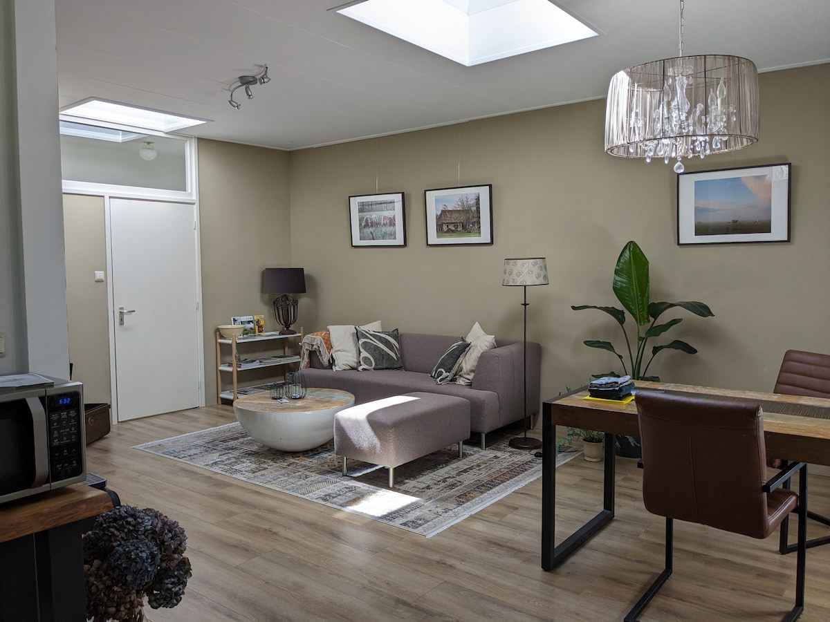 Ez a gyönyörű miniház nagyszerű kilátást nyújt a rétekre. A teraszról rendszeresen láthatod az a * sétákat, és láthatod az elhaladó kacsákat és hattyúkat. Élvezd a nyugalmat vidéken, vagy fedezd fel Groningen városát. A szobában konyha és kompakt fürdőszoba található. A ház a hátsó udvarban található, és a főházon keresztül közelíthető meg. Az alvóhely egy kihajtható lépcsőházon keresztül érhető el. Az alvóhelyen van egy tévé chromecasttal.