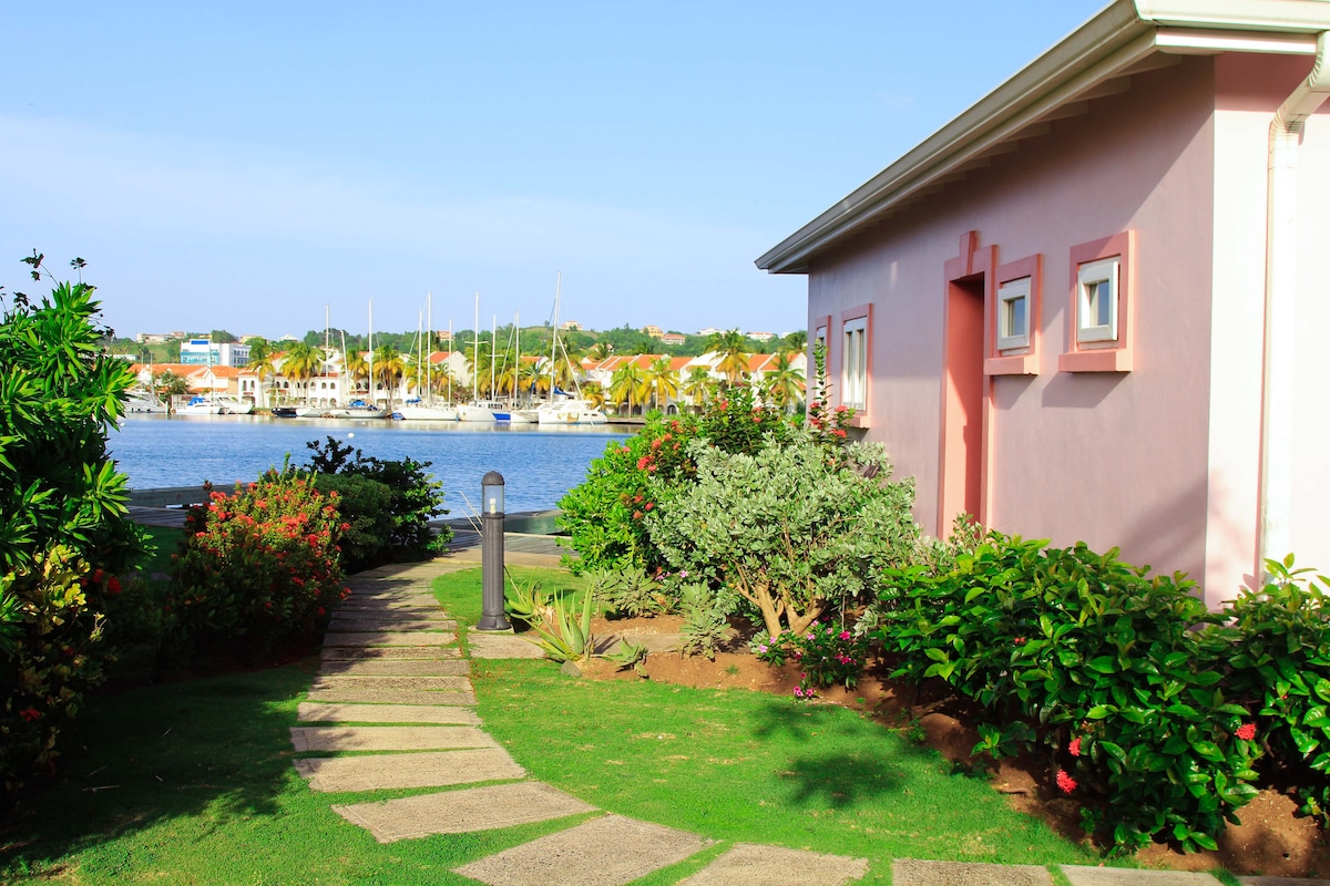 Gyönyörű, 2 hálószobás, 2 fürdőszobás otthon, amely szó szerint 5 méterre van a víztől! Ez a „Little Pink House” a The Harbor Condominium komplexumban található, a Rodney Bay szívében, és a Rodney Bay Marina minden szépségére néz. A hajócsúszdák közvetlenül a ház előtt érhetők el. Pihenhetsz a nyugodt és csendes környezetben, vagy 2 perc sétára az események középpontjában lehetsz. Kevesebb mint 5 perc sétára van a strand, és közben még egy hűtőládányi italt is húzhatsz!