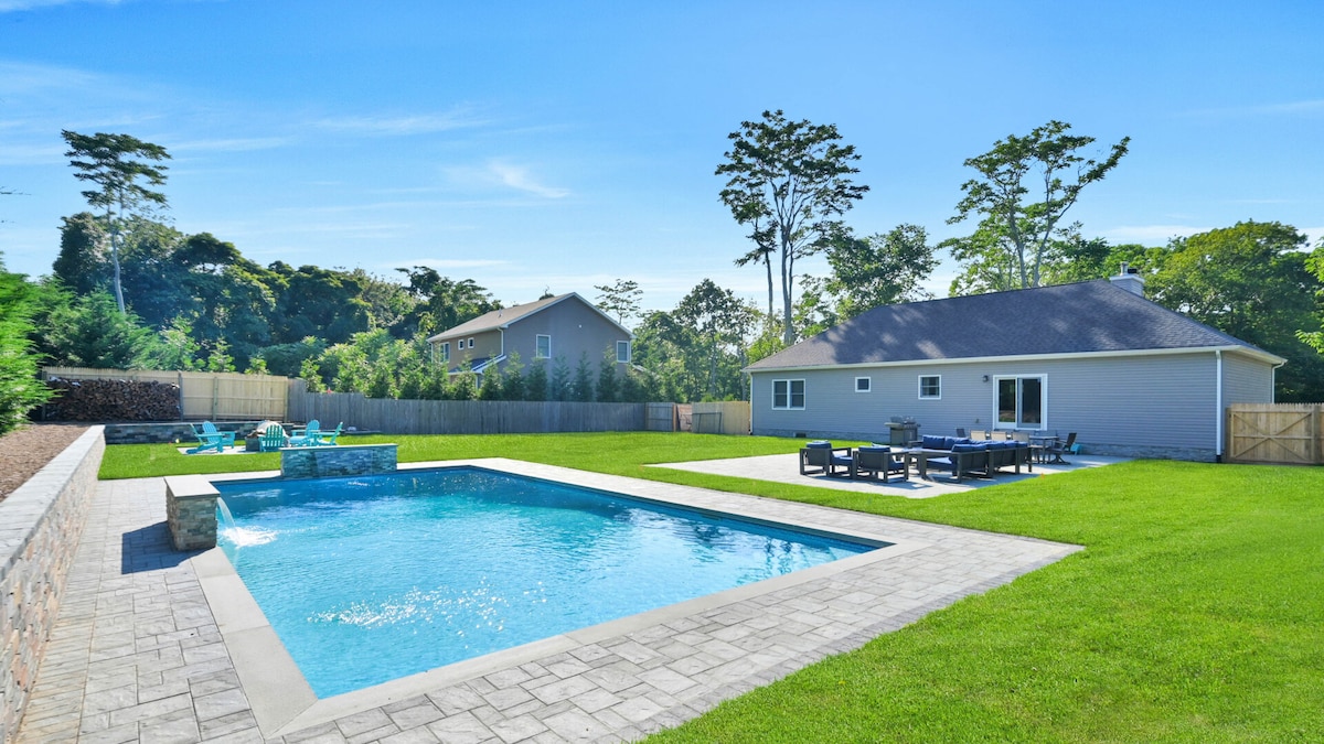 Tengerparti boldogság játékteremmel, edzőteremmel és golfpázsittal