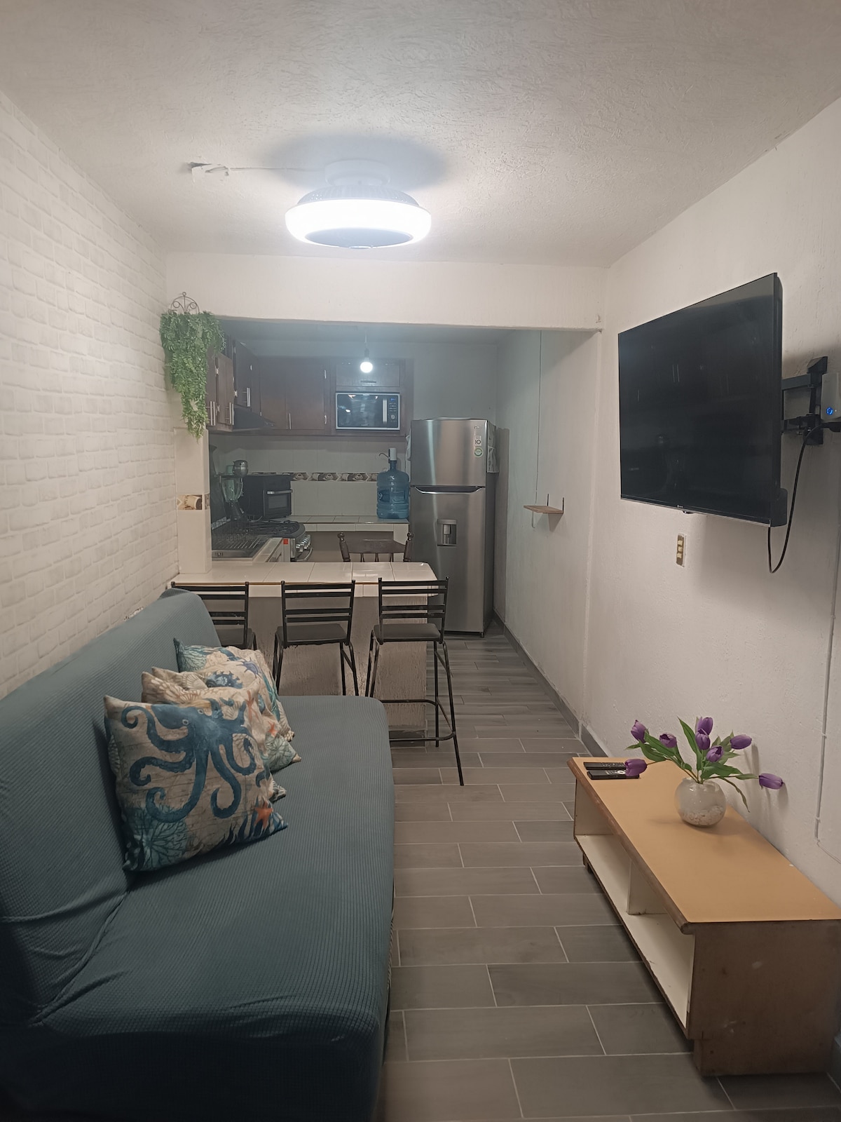 Gyönyörű emeleti lakás, - Csendes környék Tlaquepaque Centro területén -5 percre Parabantól -20 percre a repülőtértől -5 perc a Plaza Forumig -Bodega Aurrera 4 háztömb. Élvezd a kellemes tartózkodáshoz kialakított helyet -1 hálószoba -Disney+ és Star+ Free -1 franciaágy -1 Nagyon kényelmes kanapé - Konyha az összes kényelmi szolgáltatással - Reggelizőbár, étkező, internet , Smart TV és teljes fürdőszoba.