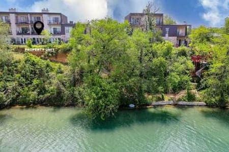 Sétálni a schlitterbahnba!! Szép díszített 2 hálószobás lakás! 2 szuper kényelmes Tommy Bahamas king méretű ággyal, plusz kanapéágyakkal! Kényelmesen elfér 6 fő, minden szoba a Comal folyóra néz, folyóparti erkély! Nem minden lakásnak van ilyen kilátása. Szabadtéri asztalok, bbq grill! Úszómedence a folyó mellett! Sétatávolságra a bájos New Braunfels belvárosától, ahol sok üzlet, élő zene és kiváló éttermek várják a vacsorát! Kérjük, forduljon hozzánk bármilyen kérdéssel! Örömmel hallok felőled!