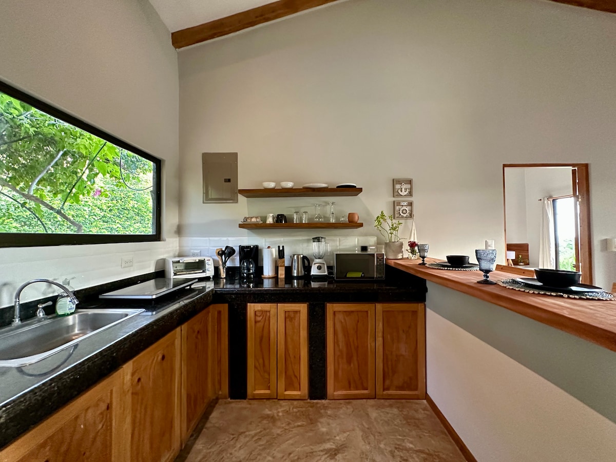 A Tamarindo-öböl feletti dombtetőn hihetetlen panorámában gyönyörködhetsz. Meglátod, mire gondolunk, amikor megérkezel! A Casita king méretű ágyat és egy lehúzható franciaágyat kínál, teljesen felszerelt, saját fürdőszobával, konyhával és egy kis erkéllyel, ahonnan kilátás nyílik az óceánra, és tökéletes a környező fák majmok megfigyeléséhez! Az ingatlan közösségi teréhez is hozzáférhetsz, beleértve az óceánra néző medence melletti szellős teraszt és a tetőtéri társalgót is!