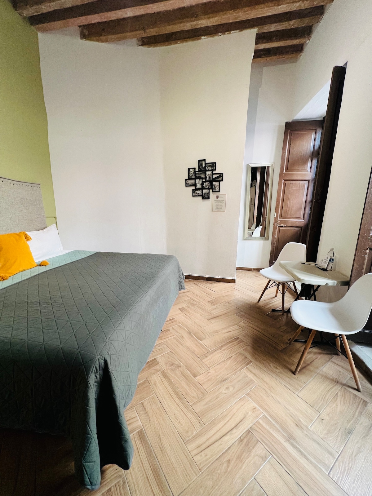 A szoba hangulatos, jól megvilágított és funkcionális teret kínál katalán boltíves mennyezettel, amely egyedi stílust kölcsönöz neki. A közös területek lehetővé teszik a vendégek kellemes és tiszteletteljes együttélését, megőrizve a csendes és otthonos légkört A házban öt privát hálószoba található saját fürdőszobával, amelyek külön-külön is bérelhetők, így tökéletes egyedül utazók, diákok, párok vagy olyanok számára, akik kényelmes és megfizethető szállást keresnek.