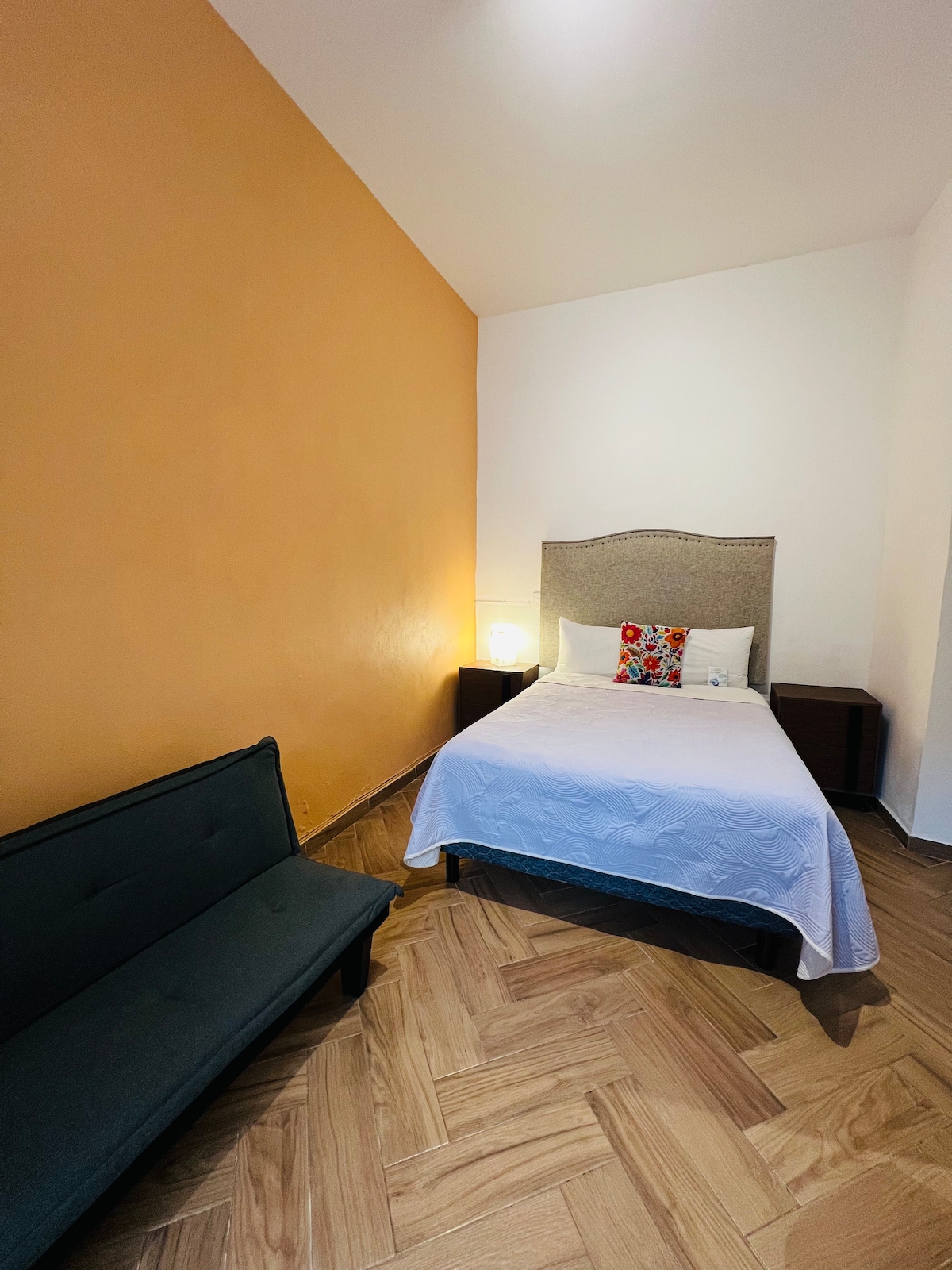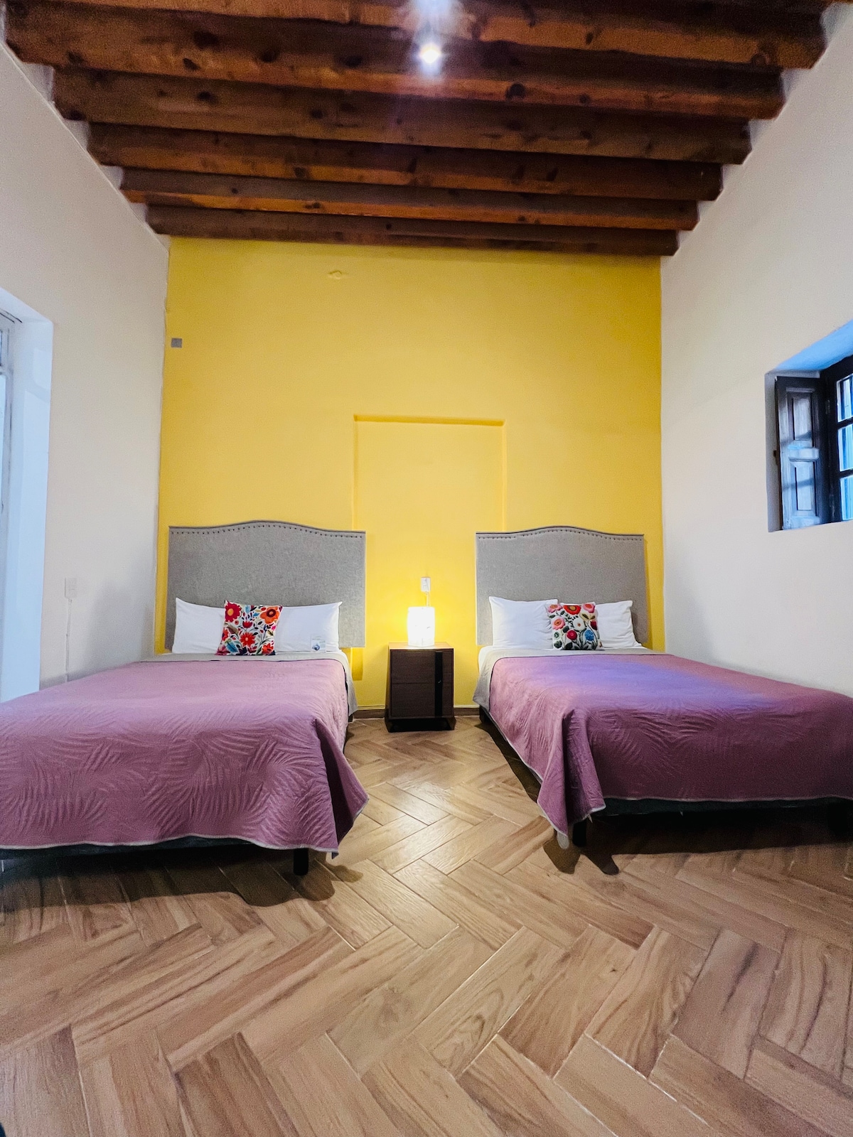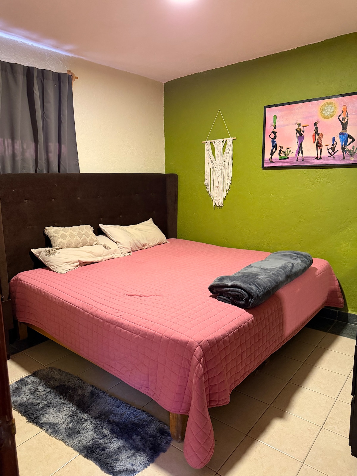 Élvezd a kényelmes és funkcionális szállást ebben a privát szobában, amely két franciaággyal rendelkezik, és ideális családok, barátok vagy kis csoportok számára. A hely saját teljes fürdőszobát, szekrényt, ventilátort és okostévét kínál, kényelmet és magánéletet biztosítva. A Casa Mixi területén található, így hozzáférhetsz a közös helyiségekhez, például a felszerelt konyhához, a panorámás kilátást nyújtó teraszhoz és a pezsgőfürdőhöz, amely tökéletes a pihenéshez a Guanajuatóban töltött időd során.