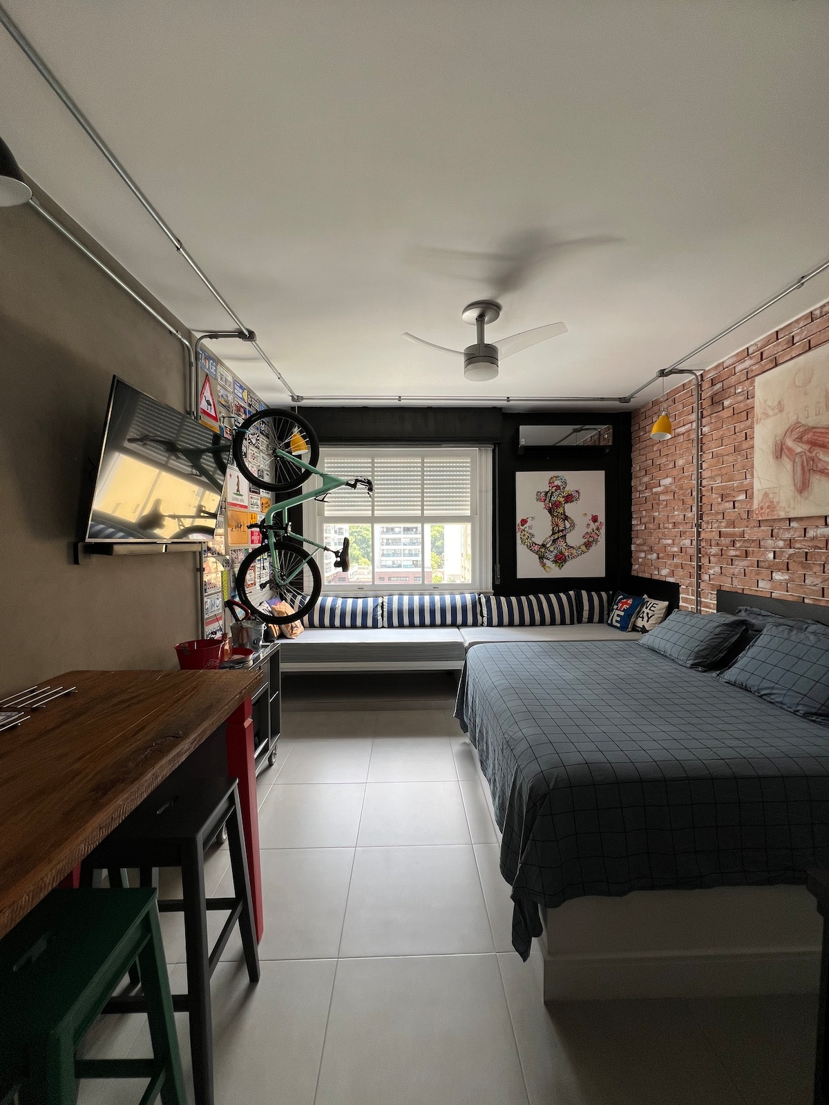 Hangulatos és nagyon bájos loftlakás, ahol pihenhetsz, otthonról dolgozhatsz, randizhatsz a családoddal, és otthon érezheted magad. Nappal világít, és a 4. emeletről részleges kilátást nyújt a tengerre. A Mário Ribeiro Streeten, Centroban, Guarujában, Rio de Janeiro és Brazília utcái között található, és mindez rövid sétával elérhető. 5 perc sétára vagyunk a Pitangueiras strandtól, 26 percre Enseadától, 29 percre a Tombo strandtól, 5 percre a Jóia szupermarkettől, 14 percre Pão de Açúcartól, 12 percre a Le 's Coffe Café-tól.