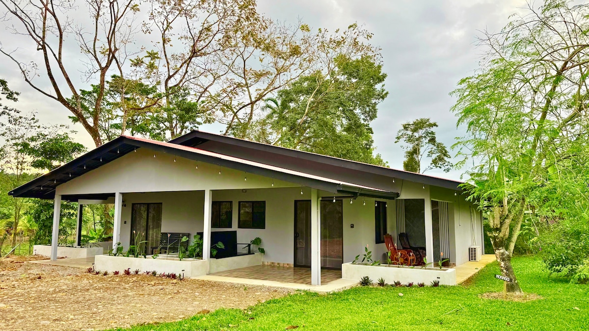 🏡This beautiful log-style, concrete cabin is a slice of tranquility! 🥘🍳🔥Full kitchen A/C, screened windows & sealed doors 🛏️🚽2 BR (1 ensuite) 2 BA + futon. 🫧👕Laundry 📶5GFiber Optic Wi-Fi 🍍Includes breakfast, fruit, snacks, refreshments & hygiene products. Located steps away from Rio Celeste. Bird watching on-site! Hiking, waterfall, horseback riding, chocolate & coffee farms, labyrinth, tubing, Volcan Tenorio National Park, sloth & nocturnal wildlife night tours ALL within mins!
