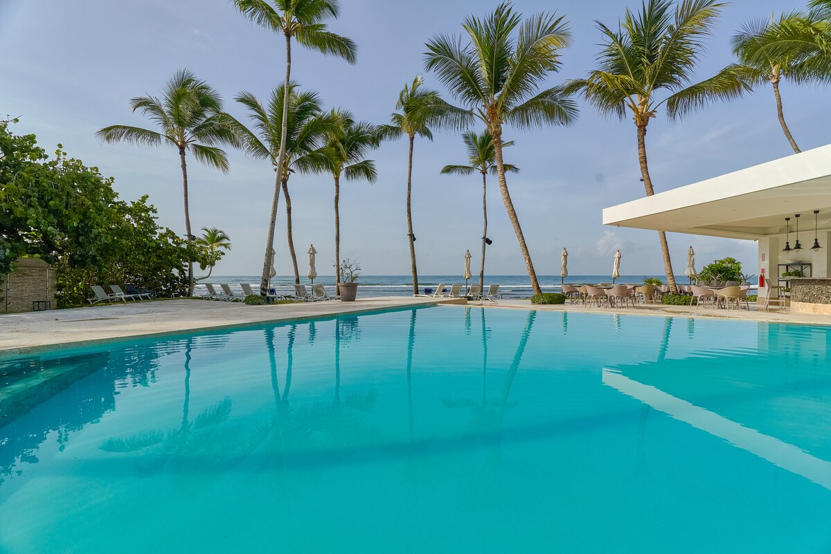 Strandra néző kilátás + medence + szauna + edzőterem + tengerparti@JuanDolio E22
