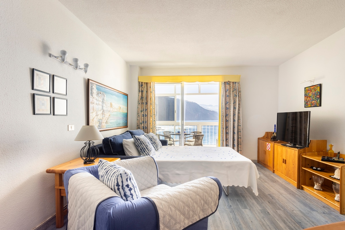 A „Bella-Vista Suite” jól megérdemli a nevét: Egy lenyűgöző szikla oldalán olyan érzés lesz, mintha az óceánon lebegne 220 méter magasan. Kétségtelen, hogy élvezheted a legjobb végtelen kilátást Tenerife északi partvidékére, amely a fenséges Atlanti-óceánnal kezdődik a lábad alatt, a komplexumnak otthont adó természetes öbölben, és a horizont felé nyúlik ki, amely a völgy feletti csodálatos Teide-ban csúcsosodik ki.